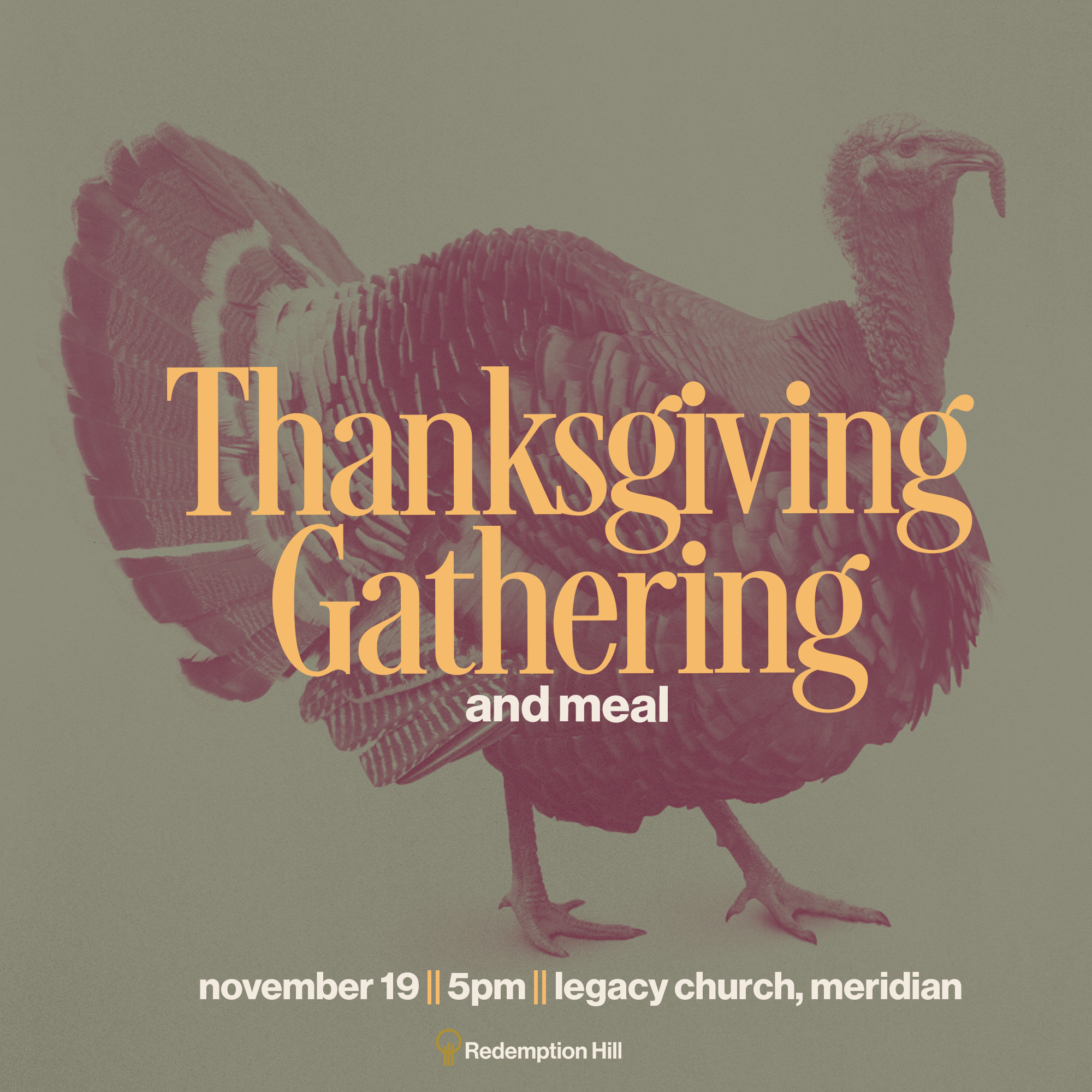 On November 19th, we'll be having our Thanksgiving Gathering at 5pm at Legacy Church in Meridian. We'll eat together and celebrate stories of how God has been faithful to us over the course of the past year.